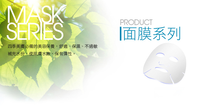 凝膠式敷面蜜(凍膜)、不織布面膜、木漿紙面膜、纖維面膜、泥狀面膜、眼膜、T型面膜、U型面膜、頸膜、胸膜、軟膜粉